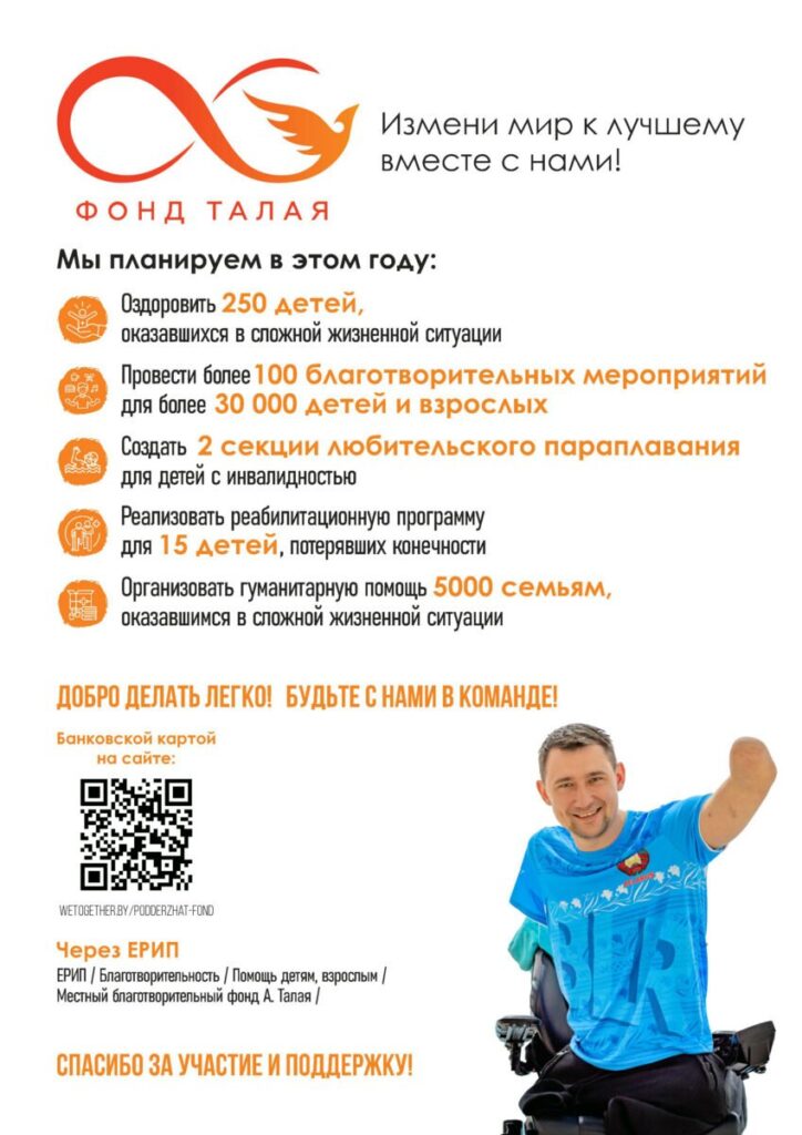 Алексей Талай — онователь фонда, член национальной Паралимпийской сборной по плаванию, предприниматель и мотивационный спикер. Цель фонда — оказать помощь людям, которым она необходима. Фонд занимается поддержкой инвалидов и тяжелобольных, детей-сирот, детей без попечения родителей, людей с тяжёлой жизненной ситуацией, детей с нарушением психофизического развития. Фонд разрабатывает реабилитирующие технологии и популяризирует здоровый образ жизни.